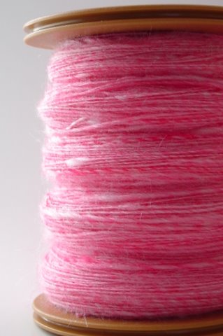 I chain-plied this yarn, being very conscious about the amount of twist I was putting into it and I am very pleased with the results. I’d say this is a pretty woolen yarn as I spun this with a supported long draw. I call it ‘Pink Parasol’. (Inspired by line in The Sound of Music).